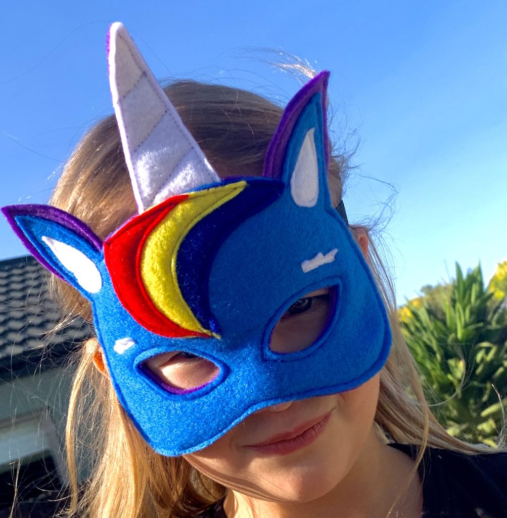 “Soar among the stars with unicorns, dinosaurs, birds and butterflies who guard the skies. Capes, masks, and cosmic play for dreamers and adventurers.”